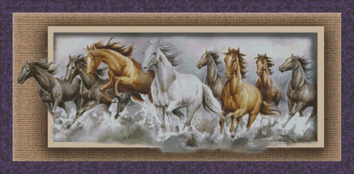 running horses out of the frame cross stitch Kristik lukisan 8 kuda lari, keluar dari bingkai.